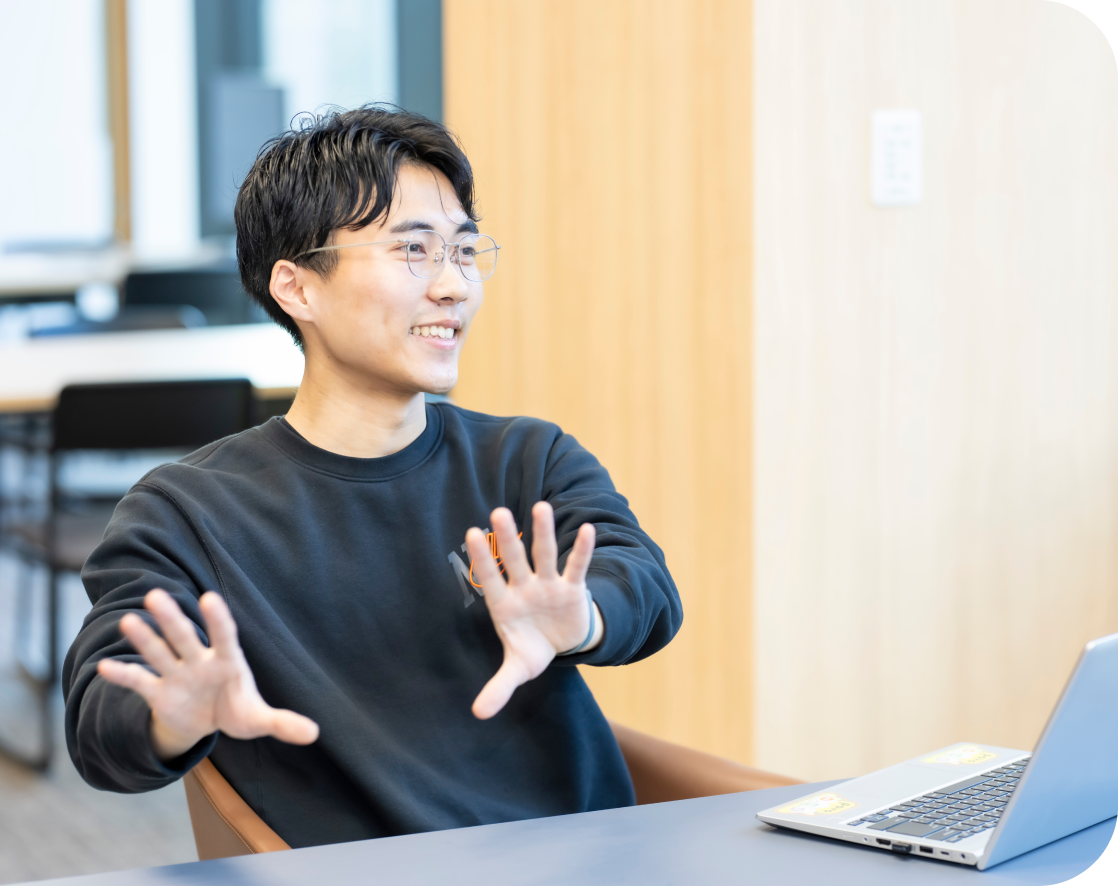 フレックスタイム制度やリモートワークを活用し、柔軟な働き方が可能です。コミュニケーションが多く必要な時は出社し、資料作成など集中したいときは自宅で作業することが多いです。職場はフラットな雰囲気で、皆さんが丁寧に話を聞いてくれるため、非常に働きやすい環境です。
